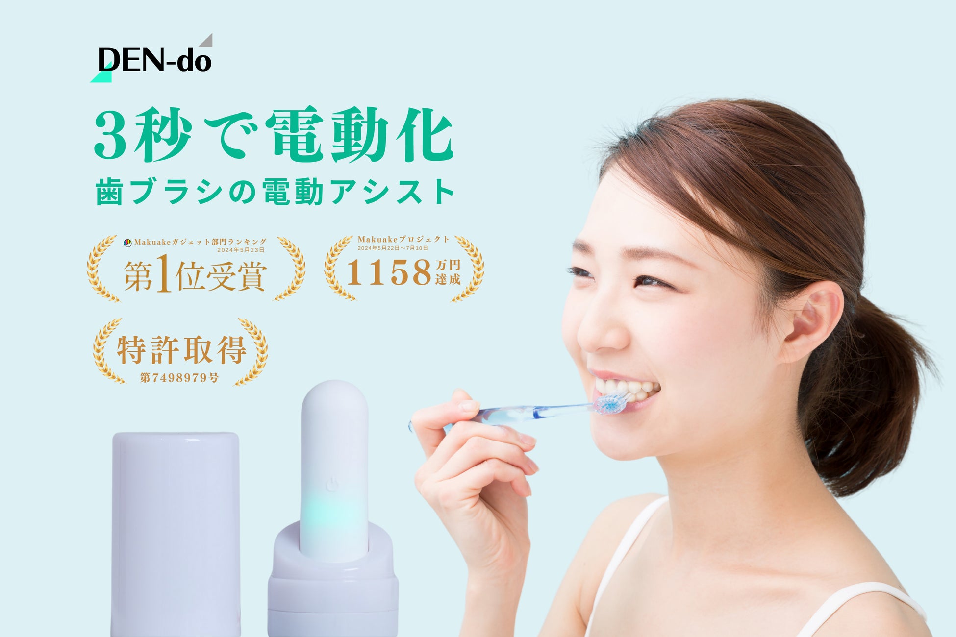 「DEN-do」は、お手持ちの歯ブラシを“3秒”で電動化できる、現役歯科医師が開発したアタッチメント型デバイスです。電動歯ブラシのような機能性を備えながら、手軽に利用できる歯ブラシの”いいとこ取り”のガジェットになっております。第一弾クラウドファンディング(Makuake)では総額1,158万円を達成し、多くのメディアやユーザーから注目を集めました。