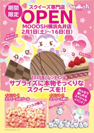 原宿で女子小中学生に大人気のスクイーズショップ「MOOOSH(モッシュ)」が、2020年2月1日(土)から2月16日(日)の期間限定で、マルイシティ横浜B2Fのイベントスペース(カレンダリウム2)にOPENします。