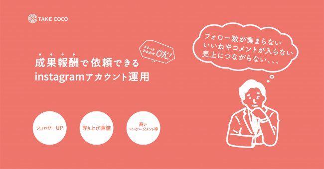 成果報酬型でInstagramアカウント運用が依頼できる「Takecoco」(テイクココ)のサービスをリリースしました。
