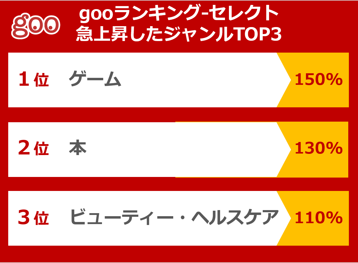 1.gooランキング-セレクトでPV数が急上昇したジャンルTOP3