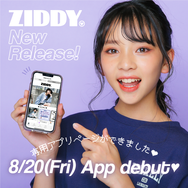 子供服の株式会社べべ(本社:神戸市中央区、代表取締役社長:小東 政章)が展開しているブランド複合ショップ『BERRY KISS(ベリーキッス)』『eaB(エーアーベー)』で人気のティーンズブランドZIDDY(ジディー)専用のアプリページが、2021年8月20日(金)よりリリースが決定いたしました。