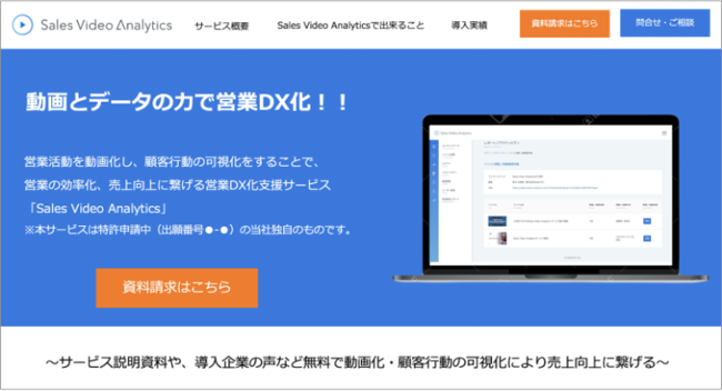 株式会社ベクトル(本社:東京都港区、代表取締役:長谷川創、東証一部:6058、以下ベクトル)の子会社で、ビデオリリース制作/配信事業を展開する株式会社NewsTV(以下:NewsTV)は、すべての営業活動を動画化し、顧客行動の可視化をすることで、営業の効率化、売上向上に繋げる営業DX化支援サービス「Sales Video Analytics(セールスビデオアナリティクス)」の販売を2022年1月26日(水)より開始します。 ※本サービスは特許申請中(出願番号2022-9160)の当社独自のものです。