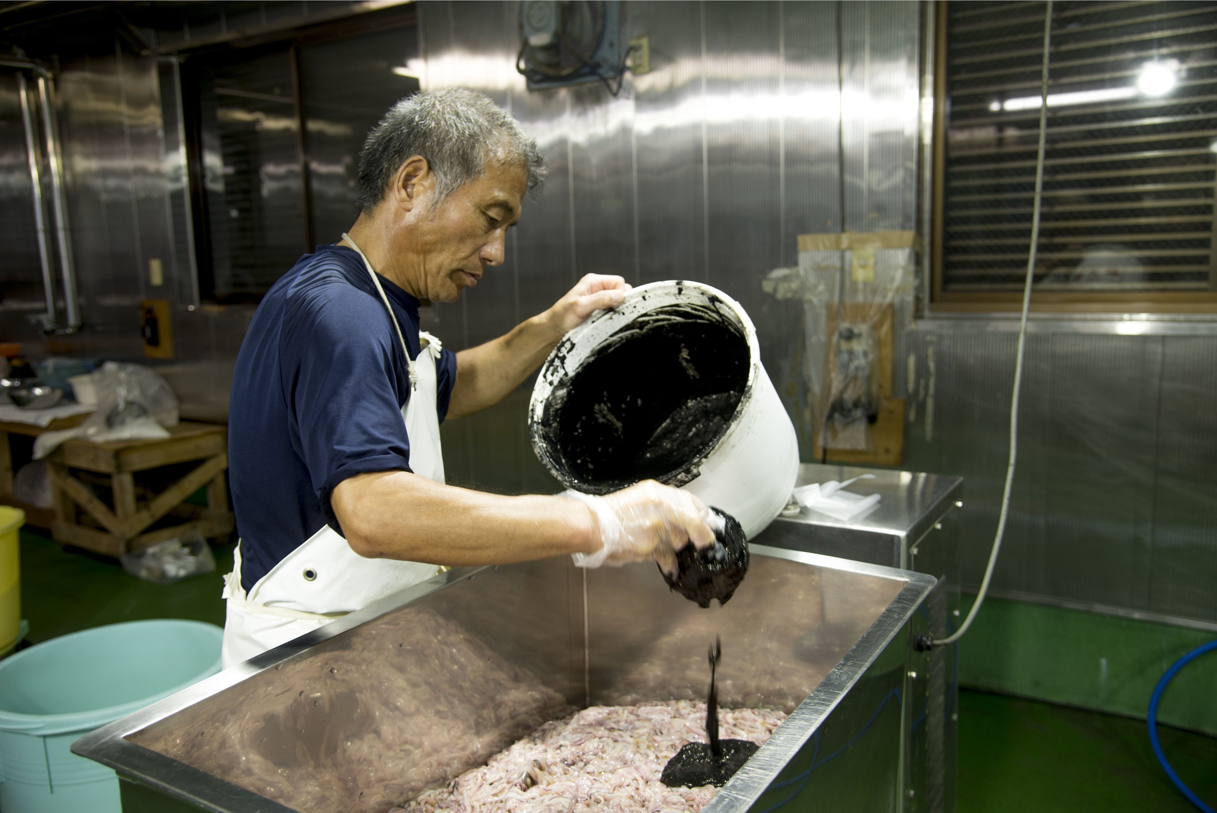 ~秘伝のレシピで作られる「甘口」で「真っ黒な」イカ墨塩辛・黒作り~