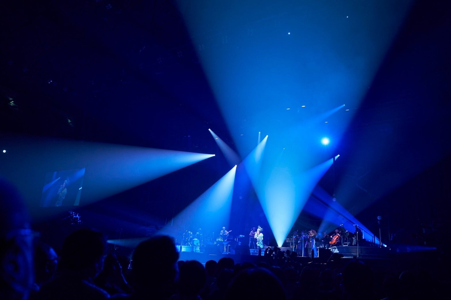 そんな寂しさとともに歌い始めた「Hello, my friend」。その1コーラス目を歌い終えたときだった…。黒のTシャツとタイトな黒いパンツという、ごくシンプルな装いだったが、周囲の空気の色ががらりと変わるようなオーラを放って、松任谷由実が、ステージに姿を現わしたのだ。オーディエンスの熱狂とともに迎え入れられたユーミンは、JUJUと顔を見合わせながら親密に歌声を重ねていった。