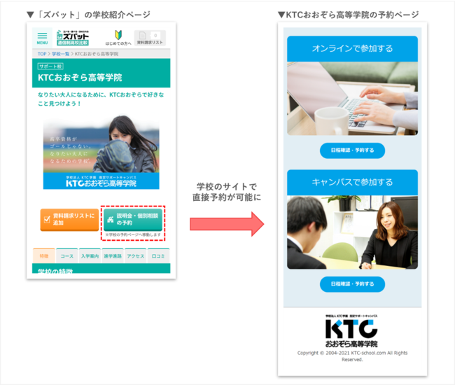 「ズバット 通信制高校比較」にて、KTCおおぞら高等学院とのシステム連携を開始。説明会・個別相談の直接予約が可能に