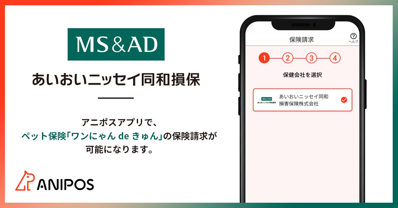 株式会社アニポスはあいおいニッセイ同和損害保険株式会社と業務提携し、アニポスアプリサービスとアニポスAI保険金査定サービスを同時に導入しました。これらのサービス導入を通して、共により良いペット保険の実現を目指します。