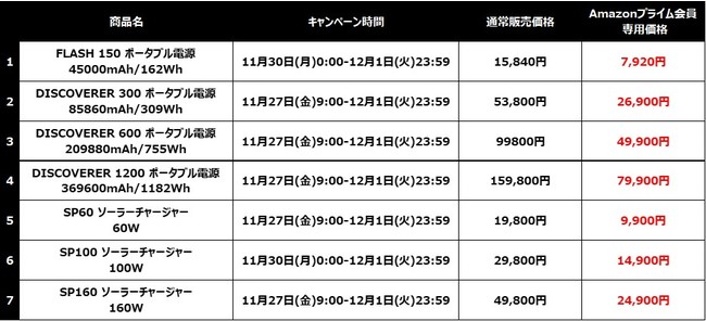 11月27日(金)からスタートする「Amazon ブラックフライデー」では、アイパーのソーラーチャージャー・ポータブル電源を、それぞれ12時間限定で、通常価格より50%オフにて販売いたします。