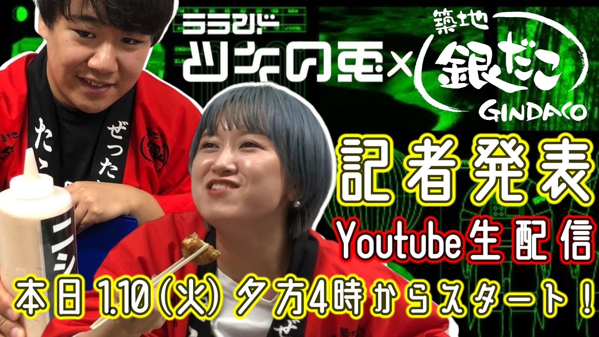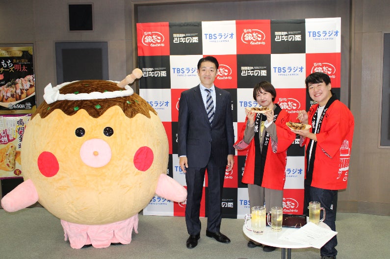 2023年1月10日(火)TBS放送センター内で、ラランド(サーヤ・ニシダ)、荻野哲 取締役副社長、銀だこキャラクター「たこぼ~」も駆けつけ、記者発表を実施。中盤には、2人が大好きな “ぜったいうまい‼たこ焼” と、大好きなハイボール(特にサーヤが)で乾杯するなど、会場が一気に和やかな雰囲気となった。
