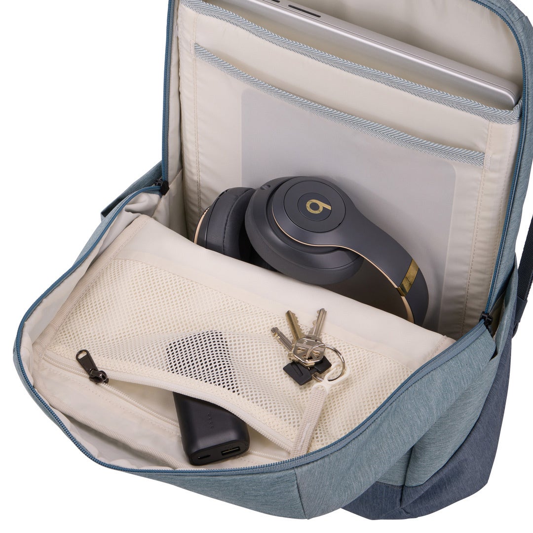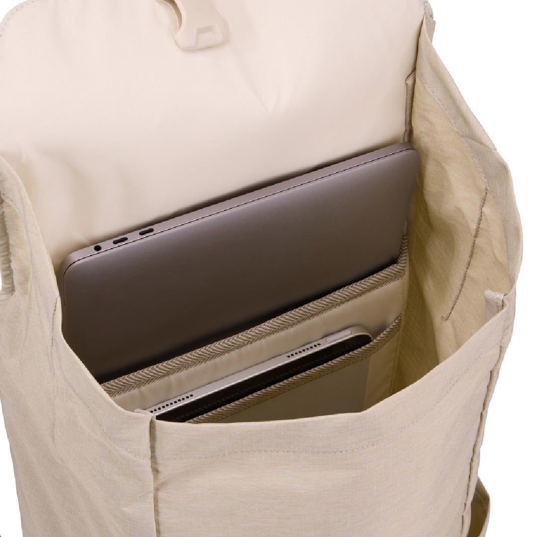 【Thule Lithos】は、軽量で引き裂きに強くアウトドア製品にも⽤いられる撥⽔加⼯済みリップストップポリエステル⽣地を使⽤。北欧らしいミニマルデザインに、PC保護や整理収納性を秘め、街散策や通勤通学に使いやすいバックパックです。