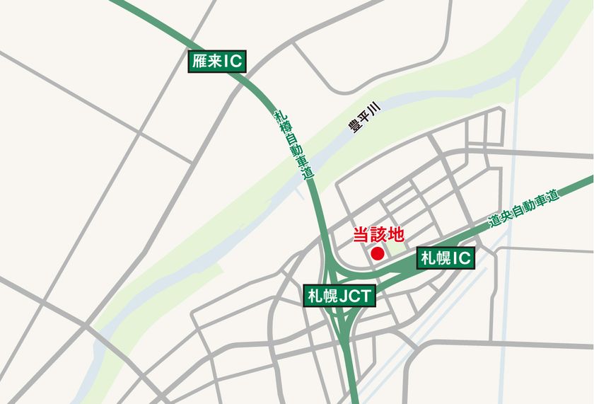 本計画地は、札幌市内中心部から約7kmに位置する米里北地区工業団地内に所在し、230万人の人口を抱える札幌都市圏への配送拠点や、道央自動車道「札幌IC」や札樽自動車道「雁来IC」への近接性を活かした北海道内広域物流を支える保管拠点としての機能が期待されます。