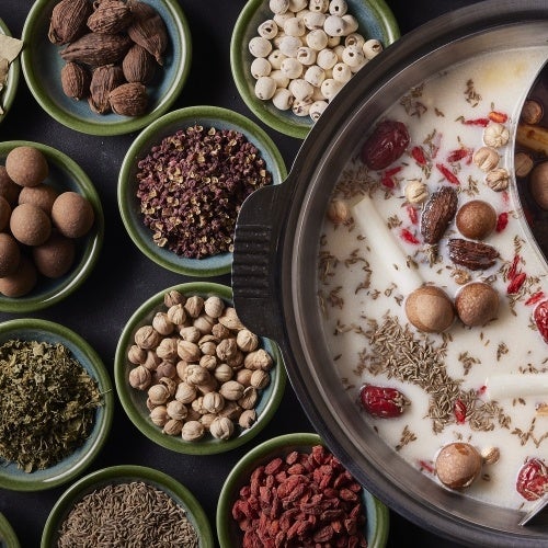 本場の唐辛子と16種類の薬膳を独自配合した 薬膳麻辣鍋