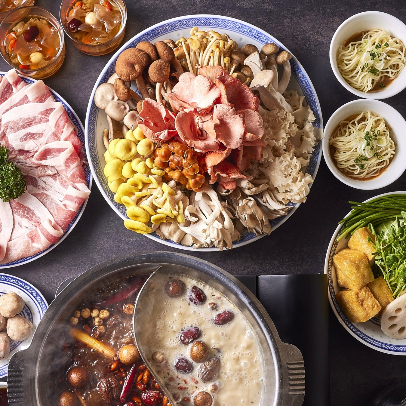 3種ある火鍋コースの中でまず召し上がっていただきたいのが「きのこ尽くしコース」ボリュームたっぷり10種類のきのこをご提供いたします。こちらは主に長野県にある信州・菅平高原のふもと、善光寺平を見渡す自然豊かな環境にある農場で育てられた、美味しさや色合いに持ち味のあるユニークなキノコたち。美容や健康に良いとされる成分を多く含んでいるものもあり、体にも嬉しく美味しい逸品です。