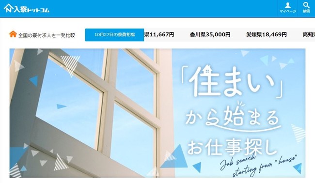寮完備・社宅付き・住み込みが可能なお仕事情報のみを集めた国内初の寮比較専門求人サイト。