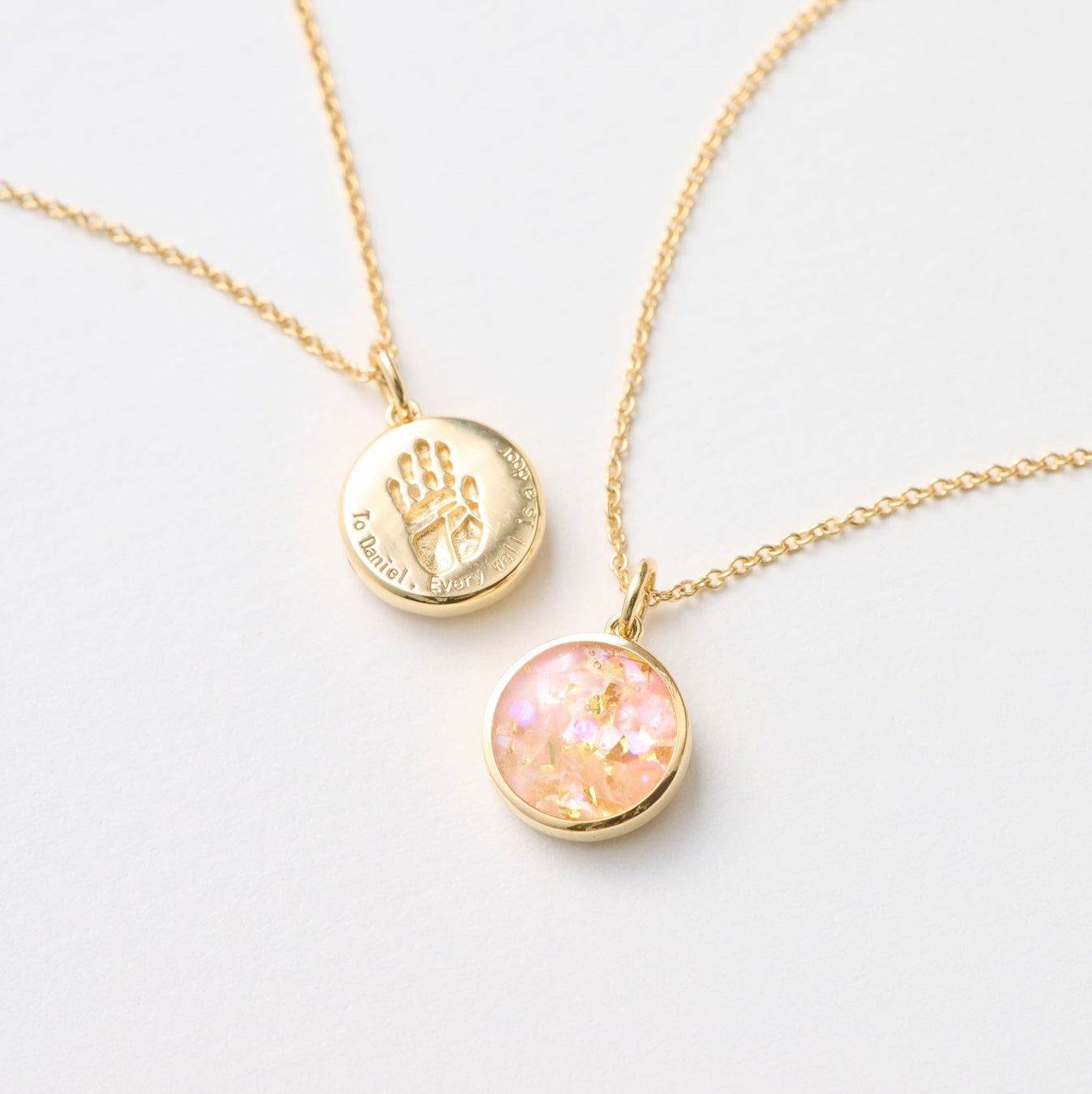 ⺟乳・へその緒をK18ゴールドの優美な輝きと包むネックレス