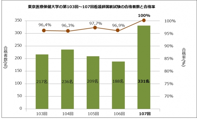 東京医療保健大学、第107回看護師国家試験で「合格率100%」達成 合格者数は四年制大学で全国最多の331人