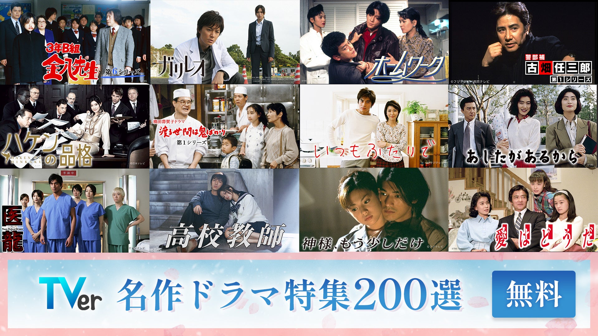 また現在配信が始まったばかりのTVer恒例『名作ドラマ特集』では200タイトル以上の超強力ラインナップが勢ぞろい。「ロングバケーション」「ラブ ジェネレーション」など90年代の名作ドラマから「真犯人フラグ」、「となりのチカラ」、「石子と羽男―そんなコトで訴えます?―」、「孤独のグルメ Season10」、「silent」、「エルピス―希望、あるいは災い―」などの最新ドラマまで、過去最高クラスの豪華ラインナップで配信中です。ぜひTVerで「もう一度見たいドラマ」を見つけてください。TVerはすべて無料で見放題です。
