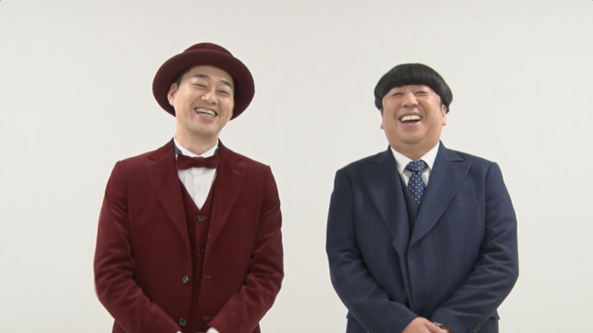 ワインレッドの衣装にステッキを持ったバイタリティ役の設楽さんと、ヒューマン役としてジャージやスーツなど様々な衣装に身を包んだ日村さん。