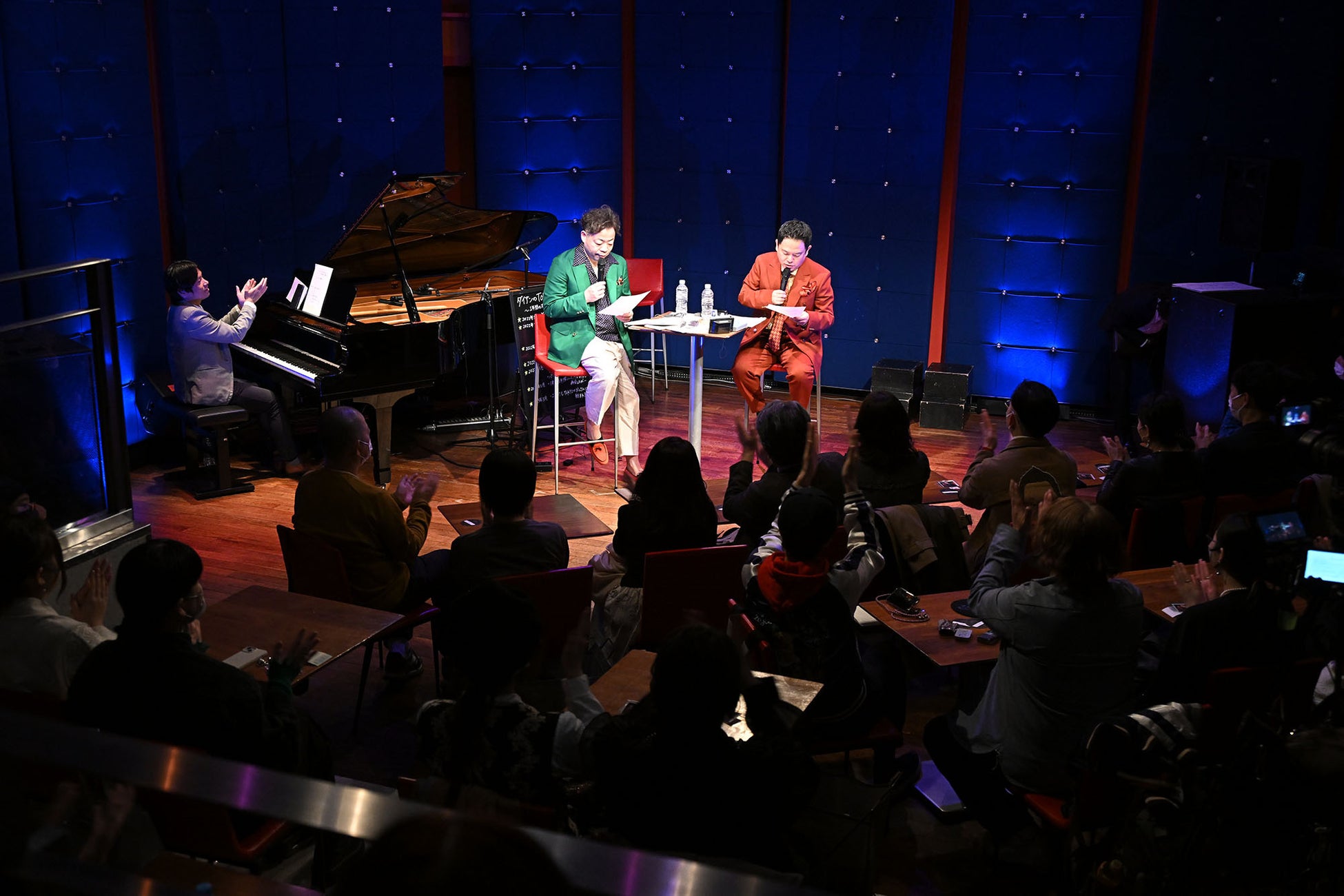 土曜日の20時30分を迎えた会場は、そのまま番組の公開生放送に突入!ジャジーなピアノの生演奏に乗せて、会場リスナーの熱気をそのままお届けしました。詳しくは、見逃し配信をご視聴ください。