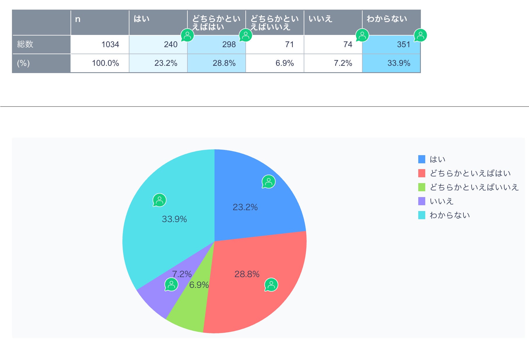 はい(23.3%)、どちらかといえばはい(28.8%)、
