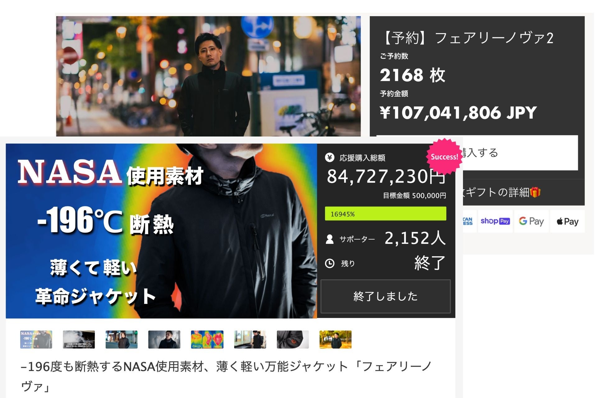 フェアリーノヴァは過去に沢山のご支援を頂き、クラウドファンディングにてわずか24日で、8,472万円のご支援を頂くことができました。その翌年に実施した予約販売は1億円を突破し、シリーズ累計で約2億円を集めました。