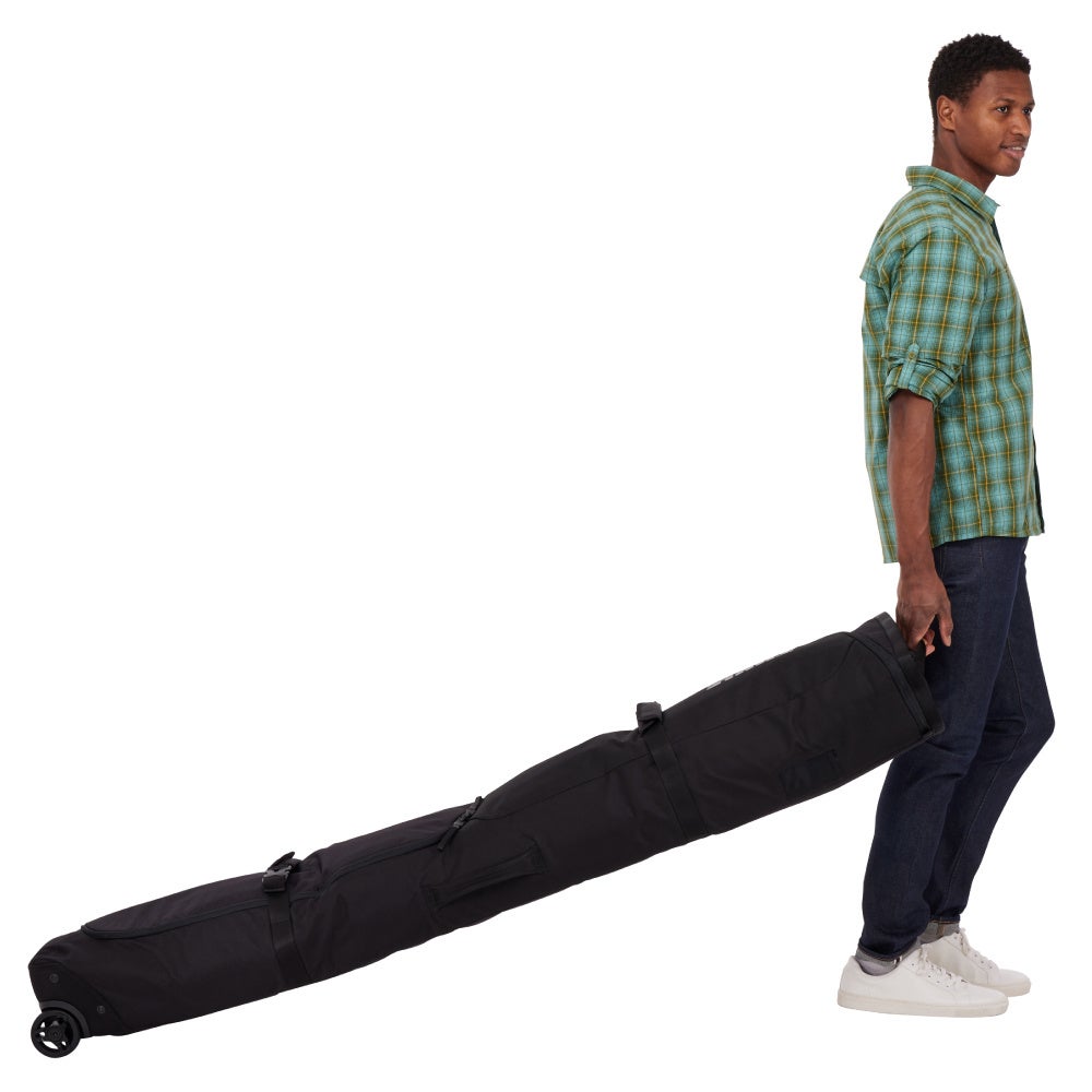 パッド付きシンチトップスノーボードスリーブを備えた広々としたローリング式スノーボードバッグで、ギアを目的地まで安全に持ち運べます