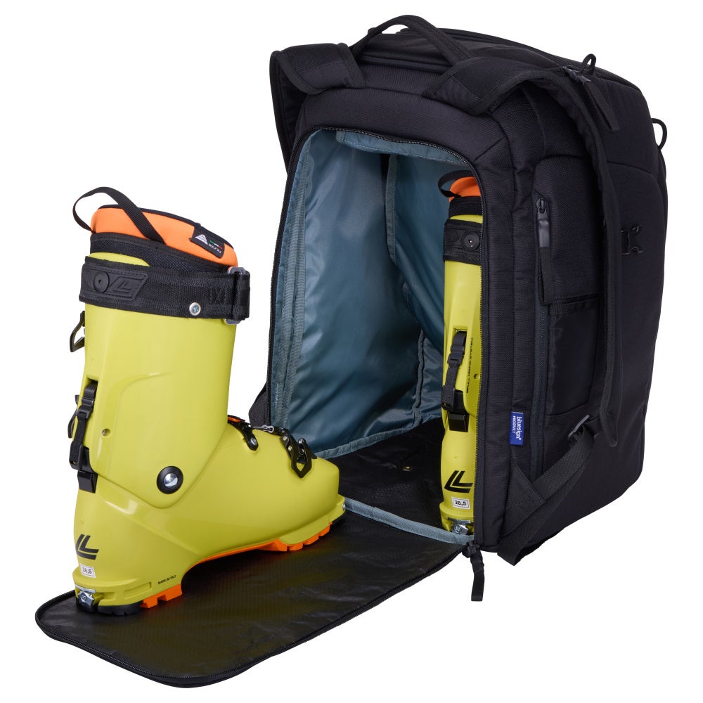 足をドライに保ち、ゴーグルを安全に保護、ギアを整理できるように設計されたブーツバックパック