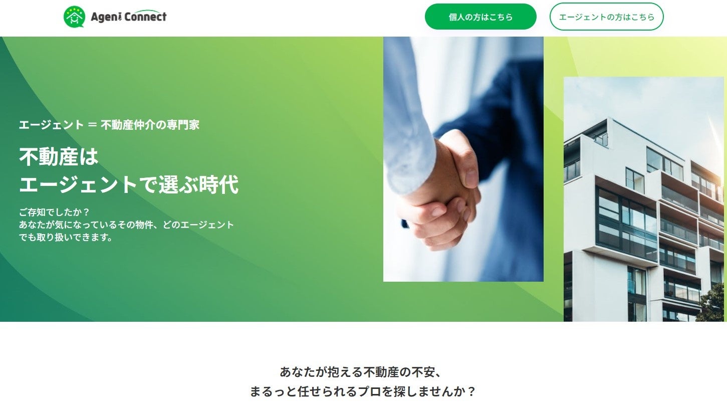不動産取引における新たな可能性を追求し、消費者に寄り添ったサービスを提供することをめざすAgent Connect株式会社(本社:東京都新宿区市谷台町4-2、代表取締役:冨谷皐介)は、不動産エージェントとユーザーが直接繋がり売買ができる「AgentConnect」(エージェントコネクト)https://agent-connect.online/をリリースしました。
