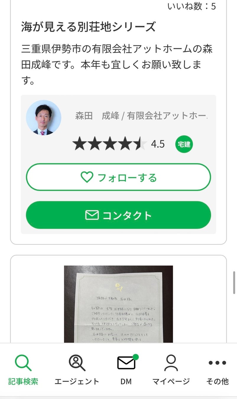 ブログの記事や口コミを参考に、信頼できるエージェントを全国から探せる、つながるサービスです。物件よりも先にエージェントを見つけることが、一般的な不動産サイトとの大きな違いです。エージェントがあげたブログを見て、人柄や実績をチェック。チャットでやり取りできるから、小さな悩みも相談可能です。