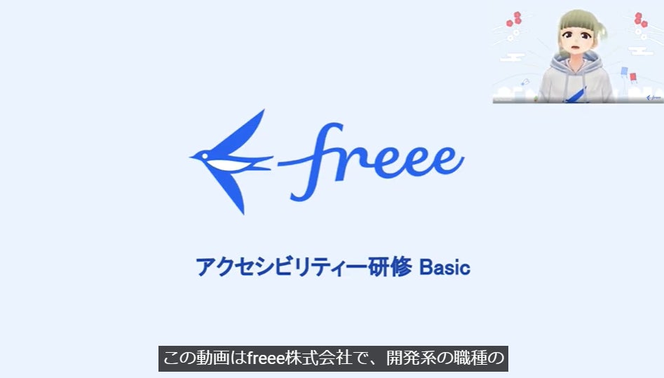 ■マジ価値サマリー(このお知らせでお伝えしたいこと) ・freeeが社内向けに開催したアクセシビリティ研修動画(技術職向け編)をfreee公式アクセシビリティYouTubeにて公開しました ・今年2月に全職種を対象とした動画を公開しましたが、新たに技術職向けの基本が学べる「Basic」、応用が学べる「Advanced」を公開しました ・freeeは今後も誰でも使えるアクセシブルな製品開発ができるように取り組んでまいります