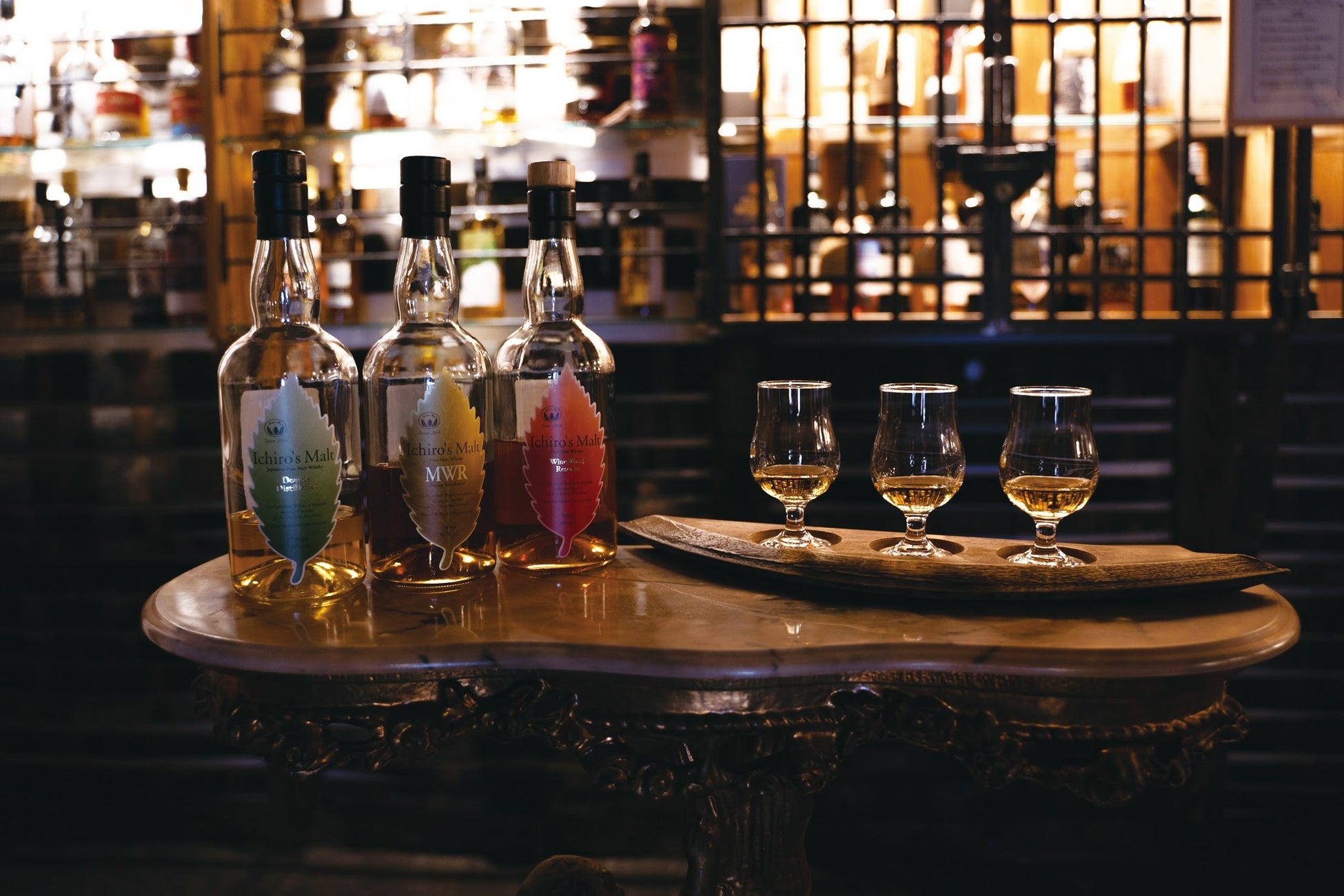 「ウイスキーと2人の花嫁」を観ながら飲める「イチローズモルトリーフシリーズ3種類+お楽しみ1種類」を飲み比べください。