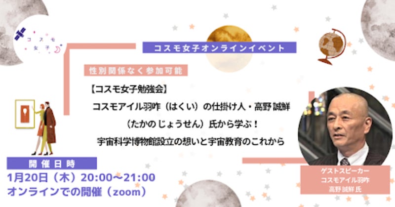株式会社 Kanatta(東京都目黒区、代表取締役社長:井口恵)が運営する「コスモ女子」は、1月20日(木)に石川県にある宇宙科学博物館「コスモアイル羽咋」の仕掛け人である高野誠鮮(じょうせん)氏をお迎えし、コスモアイル設立の想いや日本の宇宙教育についてお話しいただきました。