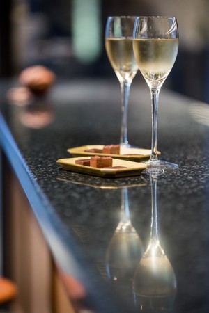 3種のボンボン・ショコラとシャンパーニュのセットをル・サロンでご提供しています。