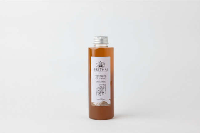カカオを木箱で発酵させる際に出る、カカオの果汁と果肉から作ったカカオヴィネガー。カカオを余すことなく使用してできた商品です。甘酸っぱさがワインヴィネガーのような味わいで、マヨネーズや、ヨーグルト、サラダなど、さまざまな料理と合わせて楽しめます。