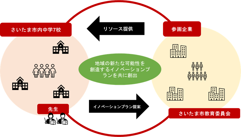 「さいたまエンジン」では、この3つのGの育成に貢献するため、今年度はプロジェクトを拡大し7校(生徒約1,110名)と13社で展開します。開かれた学校の実現に向け、「さいたまエンジン」で探究を軸とした越境型のコミュニティプラットフォームを構築し、さいたま市をさらに豊かにするプロジェクトに、中学生と企業が取り組む新しい試みとなります。