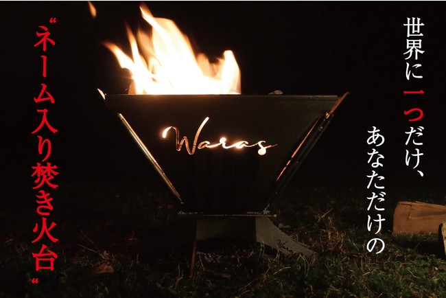 株式会社WARAS(東京都千代田区)のアウトドア部門OUTDOOR WARASと、卓越した板金加工技術力を持つ大熊製作所(埼玉県川口市)が共同開発した「世界に一つだけ、あなただけの "ネーム入り焚き火台" 」のクラウドファンドキャンペーン(https://camp-fire.jp/projects/view/523654)がキャンプファイヤーにて2021年12月24日より開始いたします。 他の誰とも違う、特別な焚火台が欲しい。そんなキャンパーの願いを叶えるべく開発した "ネーム入り焚き火台" 。小型でポータブルなM型のソロキャンプ向きから、ソロ、友人、ファミリーと多様な用途で使えるL型の2種類。ネーム、イニシャル、座右の銘、お好きな文字を焚き火台の正面、背面に最先端の技術で描き切り抜きます。