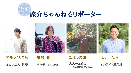 旅介ちゃんねるのオンラインツアーは、高画質の生中継、ユニバーサルツーリズムとの高い親和性という特長から、国や都道府県が実施するオンライン関連・観光関連の事業に数多く参加しています。2021年度観光庁事業「来訪意欲を増進させるためのオンライン技術活用事業」では、車椅子YouTuber・眠梨桜(ねむりさくら)さんをゲストリポーターに招き、10~11月に全6回に渡って高知県の各地からユニバーサルツーリズムをテーマとしたオンラインツアーを配信しました(アーカイブ動画はこちら https://www.tokyotravelpartners.jp/202110-2/)。