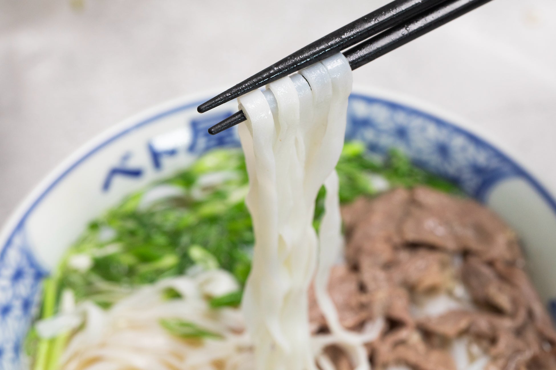 ベトナムではフォーといえば生麺が主流ですが、海外では乾麺のフォーが使われることがほとんどです。ベト屋は日本でもまだ珍しい生麺のフォーを提供しています。生麺のフォーは管理が大変な上、特に茹でる工程では調理人の腕が必要となりますが、乾麺にはないもちもち感と、スープとの一体感が楽しめます。ベト屋特製スープの風味や香りをたっぷり吸った、のどごしの良いフォーをぜひご堪能下さい。