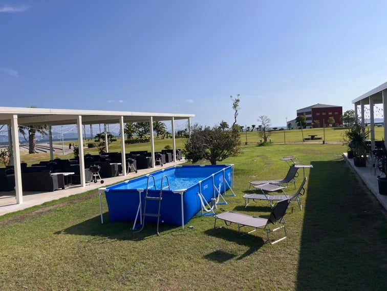 バーベキュー以外にも楽しく過ごして頂けるように施設を利用する皆さん誰もが利用できる大型プール、タンニングチェアを新たに設置。