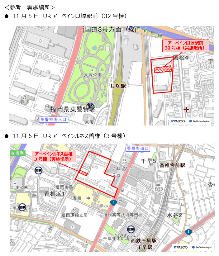 場 所:① URアーベイン貝塚駅前32号棟(福岡市東区筥松4-8-32)