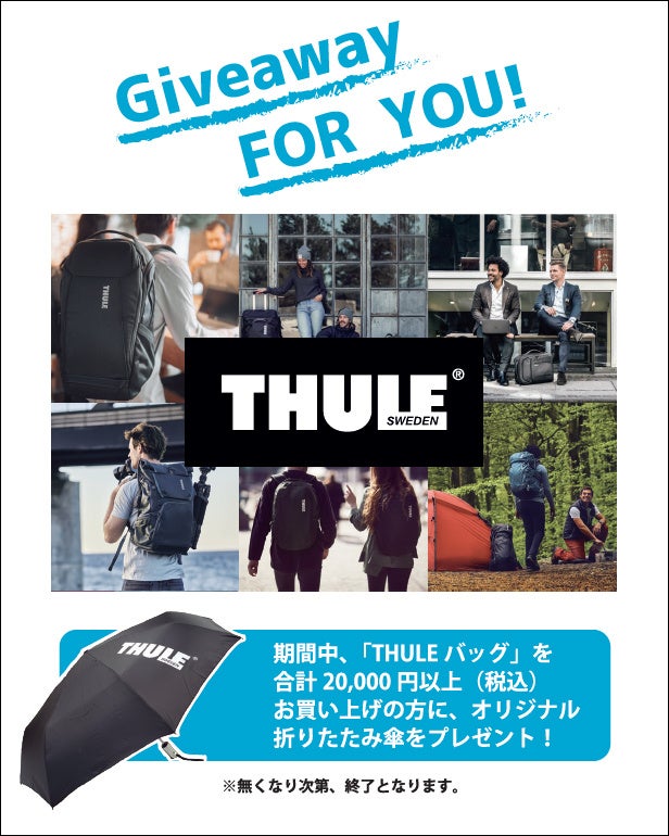 1942年に設⽴されたTHULEは「Bring your life」をモットーに、アクティブな人々が、安全、簡単、スタイリッシュに⼤切な物を運ぶ為のプレミアムな製品を幅広く展開しています。