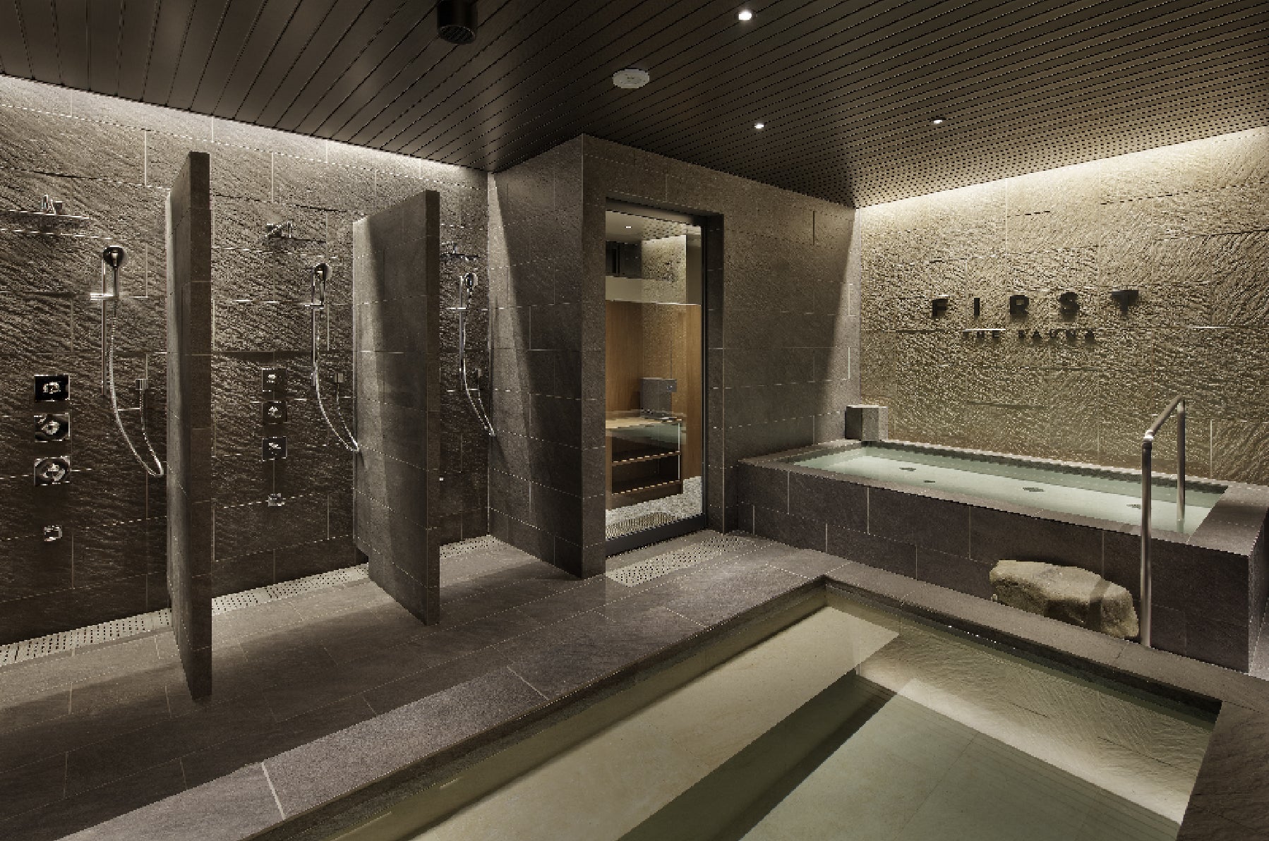 1階の「FIRST THE SAUNA」では、御影石や木の素材を使用し、竹のテクスチャーを取り入れるなど、京都が持つ「和」のイメージを大切にしています。飽きのこない普遍的なデザインで、シンプルでありながら上品で上質な世界観をつくることで、特別な時間を過ごすのにふさわしく、利用するたびに悦びを感じられるサウナを目指しました。