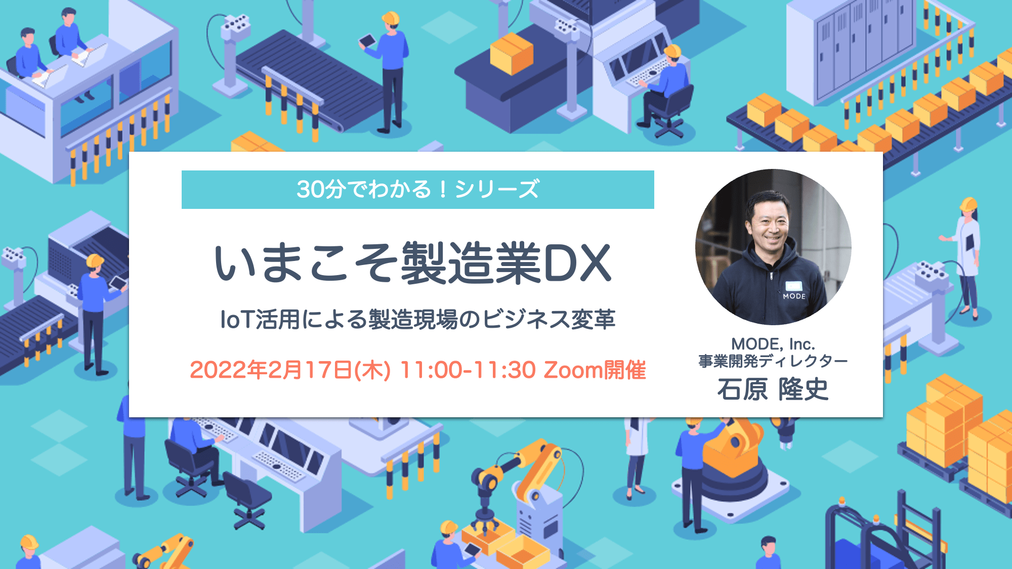 シリコンバレー発のIoT・コネクテッド関連のプラットフォームを提供するMODE, Inc.(本社:アメリカ合衆国・カリフォルニア州サンマテオ、CEO:上田 学、以下、MODE)は、製造業DXで欠かせない技術であるIoT(Internet of Things)を使った課題解決や最新事例についてご紹介するオンラインセミナーを2022年2月17日(木)に開催致します。