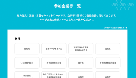 参加企業登録フォームで参加募集を行い、サイトでは本ネットワークに賛同いただける参加企業をご紹介します。