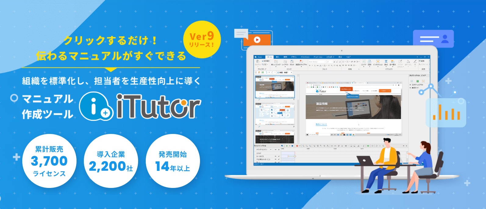 「iTutor」は、取込・編集・出力のたった3ステップで誰でも簡単にドキュメントや動画のマニュアルを作成できるマニュアル作成ツールです。