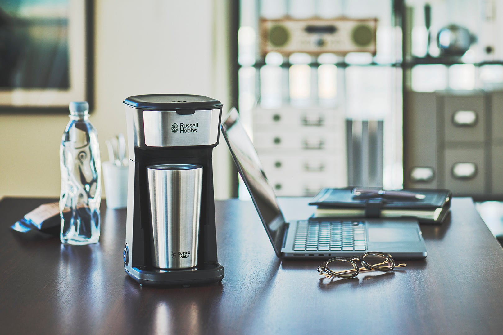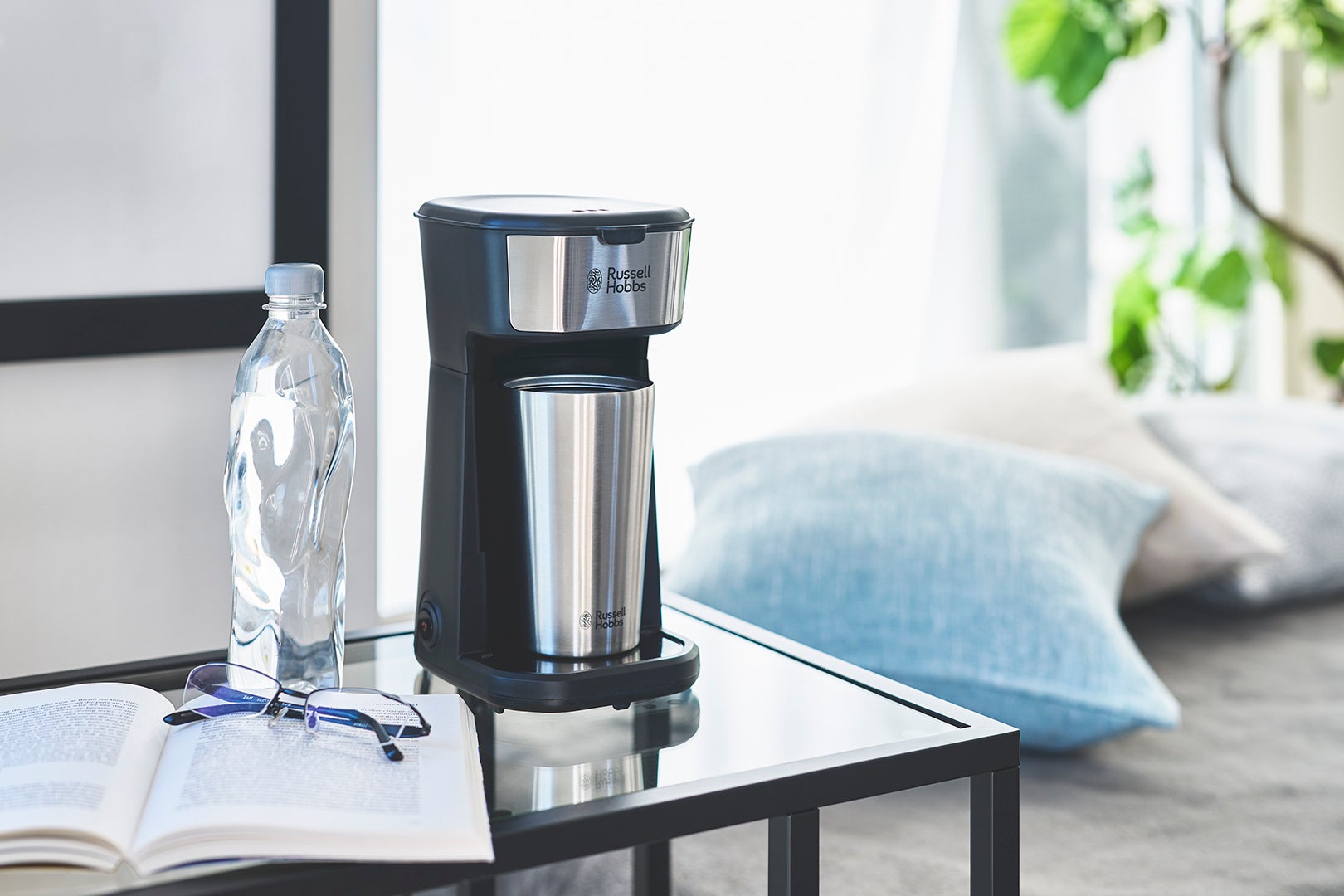 ラッセルホブスのタンブラードリップは、お気に入りコーヒーを、お好きな場所でドリップして楽しめる、パーソナルなコーヒーメーカー。保温・保冷に優れたタンブラーは持ち運びにも便利で、ドライブや街歩きのお伴にも。ベッドサイドでの目覚めの一杯や、リモートワークデスクで休憩の一杯にと、日常のささやかなひと時も、タンブラードリップで豊かなひとときになります。
