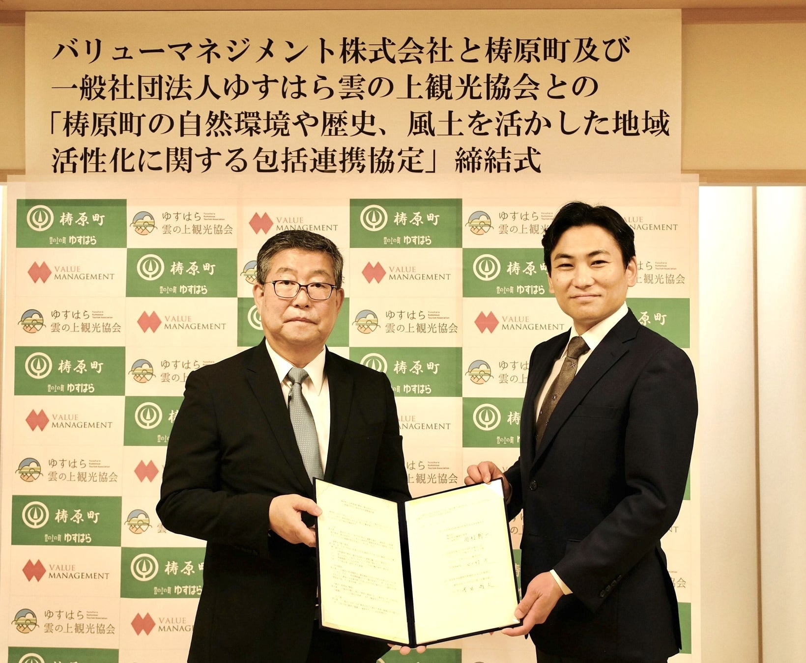 バリューマネジメント株式会社(本社:東京都千代田区、代表取締役:他力野淳、以下弊社)は、高知県梼原町及び一般社団法人ゆすはら雲の上観光協会と「梼原町の自然環境や歴史、風土を活かした地域活性化に関する包括連携協定」を、令和6年7月13日に締結したことをお知らせします。