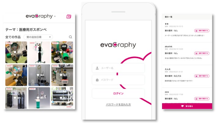 ・最初にevaGraphyを使用し、複数の関係する医療従事者に呼びかけ、医療用ガスボンベの使用状況などに関する画像と課題やニーズのコメントを収集して、現状を把握しました。