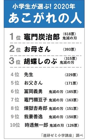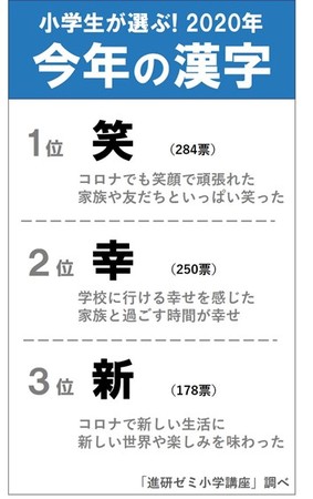 <「進研ゼミ小学講座」 ニューノーマル時代の小学生の意識調査ランキング2020>小学生が選ぶ「今年の漢字」トップ3は「笑」「幸」「新」 憧れの人物は「『鬼滅の刃』の炭治郎」と「お母さん」