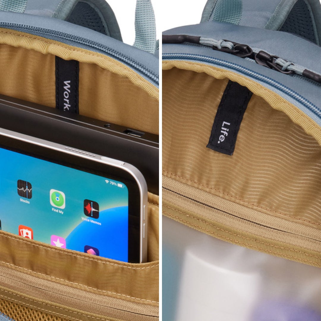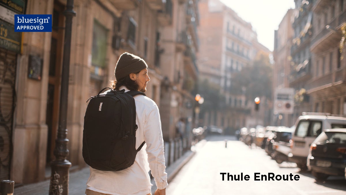 【Thule EnRoute】はアウトドア着想の機能を備え、気軽に毎日使えるバックパック。ウェルビーイングが一層求められる現代の多様な働き方に合わせやすい”Work”と”Life”⽤コンパートメントが特徴で、素材には人と環境への影響を最小限に抑えたブルーサイン®認証素材を使⽤しています。